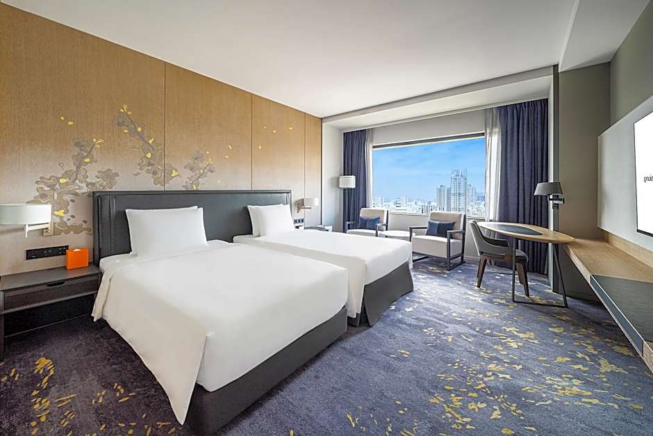 This twin room's special feature is the pool with a view. The twin room includes a private bathroom, well-fitted with a walk-in shower, a bath, a bidet, a hairdryer and slippers. The spacious air-conditioned twin room provides a flat-screen TV with streaming services, a mini-bar, a tea and coffee maker, a wardrobe as well as city views. The unit offers 3 beds.